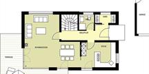 Dieses Einfamilienhaus bietet aufgrund optimierter Grundrissplanung genug Platz für die ganze Familie. Es ist in massiver Ziegelbauweise erstellt und mit einem Keller versehen, der nach dem Prinzip der „weißen Wanne“ errichtet wurde. Die Schlafräume mit Bad befinden sich im Obergeschoß. Der Sichtdachstuhl lässt in diesem Bereich Raumhöhen von bis zu 3,8 Metern zu.