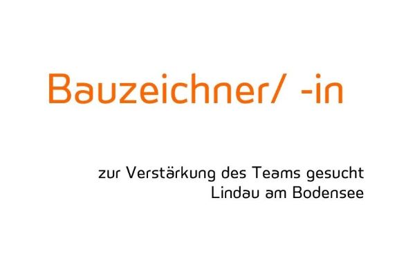 Bauzeichner/-in (m/w/d) Unser Architekturbüro steht für anspruchsvolles und nachhaltiges Bauen in der Bodenseeregion. Unsere Arbeitsschwerpunkte sind Neubauten und energetische Sanierungen im Bereich Wohnungsbau. Derzeit arbeiten wir in einem Team aus sieben Architekt-/innen und Bauzeichner-/innen und freuen uns über ein