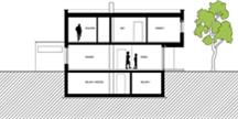 die Erdgeschoßebene aus und verleiht dem Objekt in Verbindung mit den großzügigen Verglasungen der Wohnebene eine gewisse Leichtigkeit.