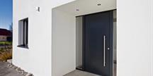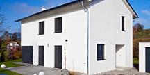 Dieses Einfamilienhaus bietet aufgrund optimierter Grundrissplanung genug Platz für die ganze Familie. Es ist in massiver Ziegelbauweise erstellt und mit einem Keller versehen, der nach dem Prinzip der „weißen Wanne“ errichtet wurde. Die Schlafräume mit Bad befinden sich im Obergeschoß. Der Sichtdachstuhl lässt in diesem Bereich Raumhöhen von bis zu 3,8 Metern zu.