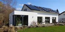- Haustechnik : Erdflächenkollektor mit Sole-/Wasser-Wärmepumpe. Zentrale Lüftungsanlage mit Wärmerückgewinnung. Regenwasserzisterne zur Gartenbewässerung und Nutzung im Objekt (WC-Spülungen).