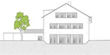 Dieses Dreifamilienhaus mit Massivgarage entsteht im Zuge der Nachverdichtung auf einem relativ kleinen Grundstück und als Ersatz für einen Altbau. Das Objekt erhält einen Keller aus wasserundurchlässigem Beton und in den Wohngeschossen ein hochwärmedämmendes Ziegelaußenmauerwerk. Die im Keller angeordnete Pelletsheizung liefert die nötige Energie für die Heizung und die Warmwasserversorgung.