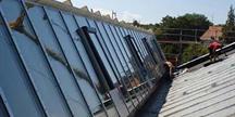 Das Sporthallendach der Berufsschule in Lindau wurde umfassend saniert. Die vorhandenen Shedverglasungen wurden komplett erneuert und durch Scheiben und Öffnungsflügel mit Dreifachverglasungen ersetzt. Die Dachflächen erhielten einen hoch wärmegedämmten Aufbau mit oberseitiger Stehfalzdeckung. Abschließend wurde auf den geschlossenen Dachflächen eine Photovoltaikanlage installiert.